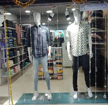 We H & H Creations, at our store in Nuzvid, we believe fashion is more than clothing—it’s confidence, style, and individuality. As proud franchise partners of Crimsoune Club and Spykar Factory Outlet, we bring you authentic men’s wear from two of the most trusted brands in India. Our collection ranges from stylish casuals and denims to smart formals and trendy outfits, ensuring something for every occasion. With a focus on quality, comfort, and affordability, we curate only the best for our customers. What sets us apart is our warm shopping experience, personalized assistance, and commitment to keeping the latest trends within your reach. Step in, explore, and discover your style with us—because looking good should always feel effortless.